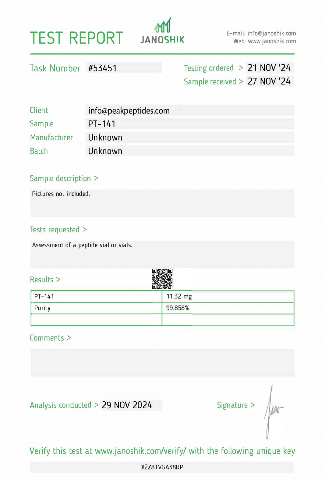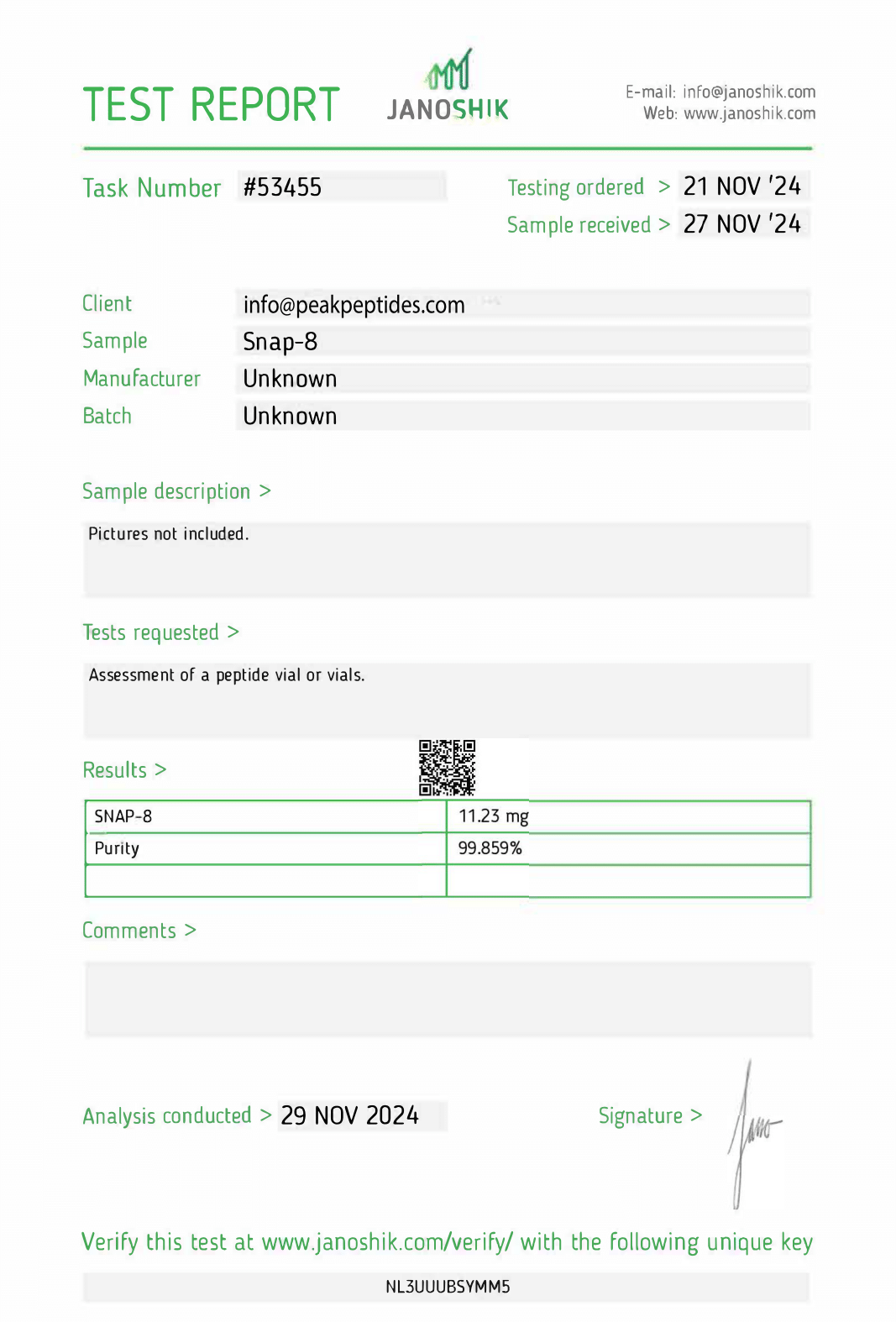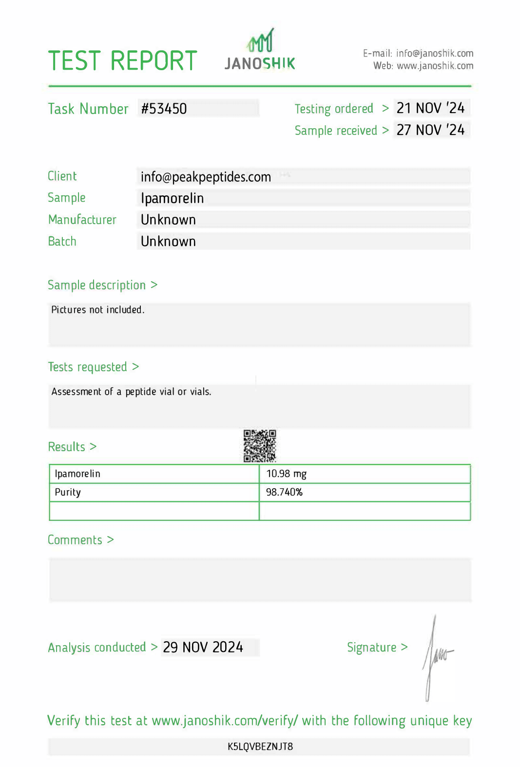 At Peak Peptides, we prioritize your product confidence by adhering to industry-leading testing standards. Every product undergoes a thorough analysis in ISO/IEC 17025-certified laboratories to ensure compliance with global safety and quality guidelines.